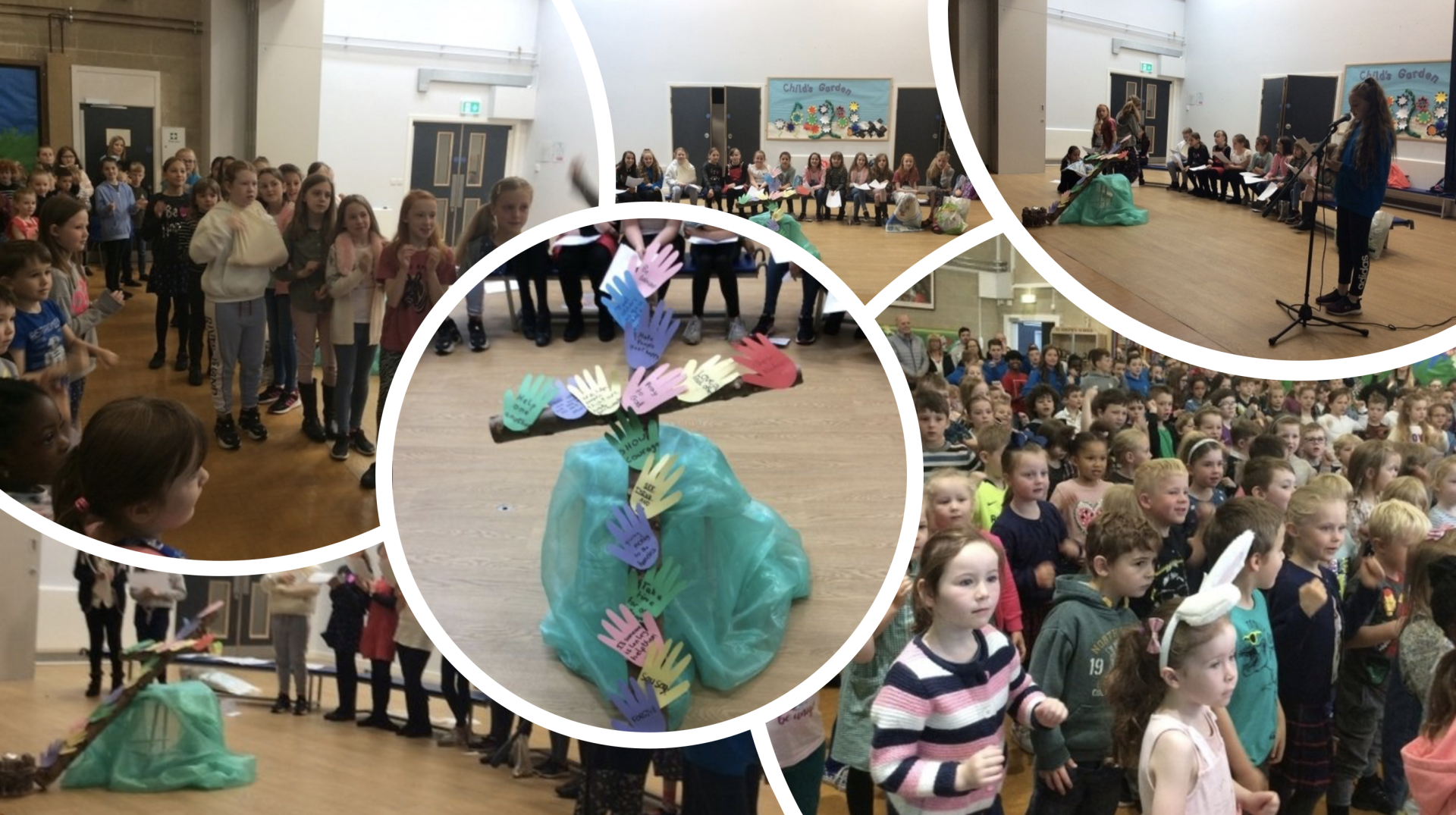 We led a liturgy for the school, reflecting on our Mini Vinnie motto of 'turning concern into action'. After visiting London and meeting other Mini Vinnies we were inspired to hear how other Mini Vinnie groups help their communities. We told our school about this and encouraged them to 'SEE, THINK, DO' with helping hands and we gave them all helping hand cut outs to reflect more in class and remind them to help others.