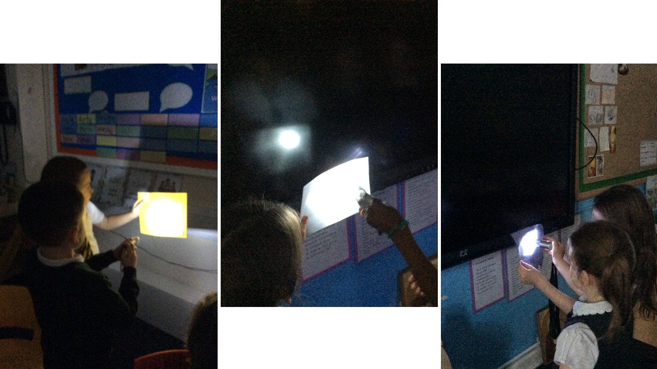 We looked at which materials were the most suitable for an umbrella, tested different objects to see which were the most flexible and used torches to test which materials were opaque and which were transparent.